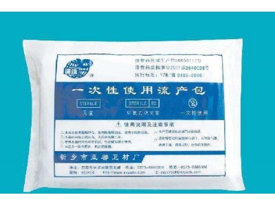 【主要结构】:无菌流产包由基本配置由一次性使用手术衣、一次性使用帽、一次性使用口罩、检查手套、一次性使用无菌阴道扩张器、纱布叠片、棉签、裤腿、垫单、治疗巾、洞巾、包布等组成。